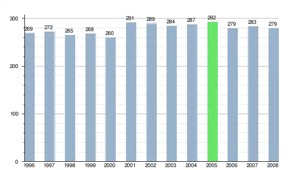 Zmiany liczby ludności w miejscowości Bulhary od 1996 roku.