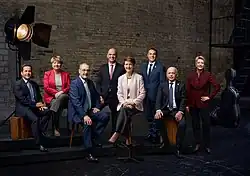 Szwajcarska Rada Związkowa w 2017 (II). Od prawej: prezydent Doris Leuthard , wiceprezydent Alain Berset , Simonetta Sommaruga , Ueli Maurer , Johann Schneider-Ammann , Guy Parmelin , Ignazio Cassis oraz dodatkowo kanclerz federalny Walter Thurnherr