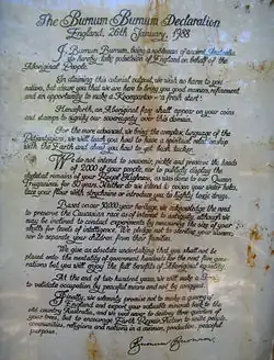 Podczas obchodów dwustulecia Australii w dniu 26 stycznia 1988 Burnum Burnum zatknął flagę rdzennych mieszkańców Australii na kredowych skałach Dover na wybrzeżu Wielkiej Brytanii. Było to symboliczną odpowiedzią na flagę brytyjską zatkniętą na wybrzeżu Australii w roku 1788 przez Arthura Phillipa.