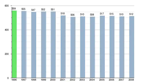 Według danych z dnia 31 grudnia 2012, wieś zamieszkiwało 528 osób, w tym 256 kobiet i 272 mężczyzn[6].