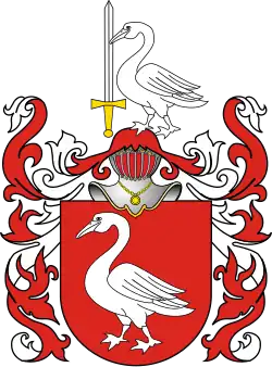 W polu czerwonym łabędź kroczący srebrny.