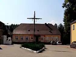 - plebania, barokowy budynek z około 1800 roku został założony na planie prostokąta. Nakryto ją dachem naczółkowym. Wewnątrz podpiwniczonej plebanii zachował się pierwotny układ pomieszczeń z sienią przelotową. Brak jest dawnego oryginalnego wyposażenia[5].