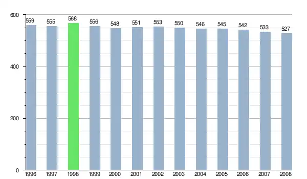 Według danych z dnia 31 grudnia 2012, wieś zamieszkiwało 559 osób, w tym 264 kobiety i 295 mężczyzn[7].