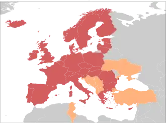 Albania, Bośnia i Hercegowina, Chorwacja, Czarnogóra, Macedonia, Serbia, Tunezja, Turcja oraz Ukraina są obecnie członkami stowarzyszonymi, z perspektywą zostania pełnoprawnymi członkami (afiliantami).