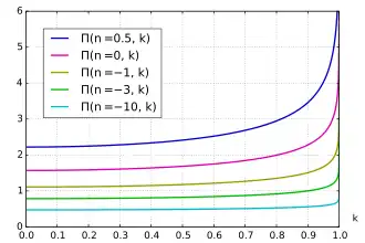 - – dowolna liczba rzeczywista – całka eliptyczna niezupełna 3. rodzaju.