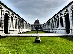 Najbardziej znany i najlepiej zachowany historyczny cmentarz tego rodzaju znajduje się w Pizie – Camposanto Monumentale; pochodzi XIII-XV wieku, położony jest w pobliżu miejscowej katedry. Jego specyficzną scenerię (wraz z opisem) wykorzystał Józef Ignacy Kraszewski we współczesnej powieści obyczajowej Na cmentarzu – na wulkanie, powstałej podczas kolejnej podróży do Włoch w 1863 roku[3].