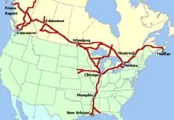 - ↑ Według kanadyjskiej klasyfikacji kolej klasy I ma przychody większe niż 250 milionów CAD na rok