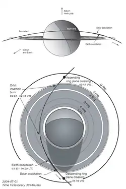 - ↑ NASA: Cassini Saturn Orbit Insertion Timeline – 2004. [dostęp 2011-03-13]. (ang.).