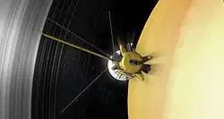 - ↑ Jet Propulsion Laboratory: Cassini Spacecraft Makes Its Final Approach to Saturn. 2017-09-13. [dostęp 2017-09-14]. (ang.).