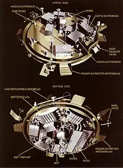 Na pokładzie orbitera znajdowało się 12 instrumentów naukowych. Większość instrumentów została przymocowana do dwóch stałych platform na powierzchni kadłuba. Były to paleta dla instrumentów teledetekcyjnych (remote-sensing pallet) i paleta dla instrumentów badających cząstki i pola (particles-and-fields pallet). Ponieważ brak było ruchomej platformy skanującej, cała sonda musiała być obracana podczas wykonywania obserwacji teledetekcyjnych.