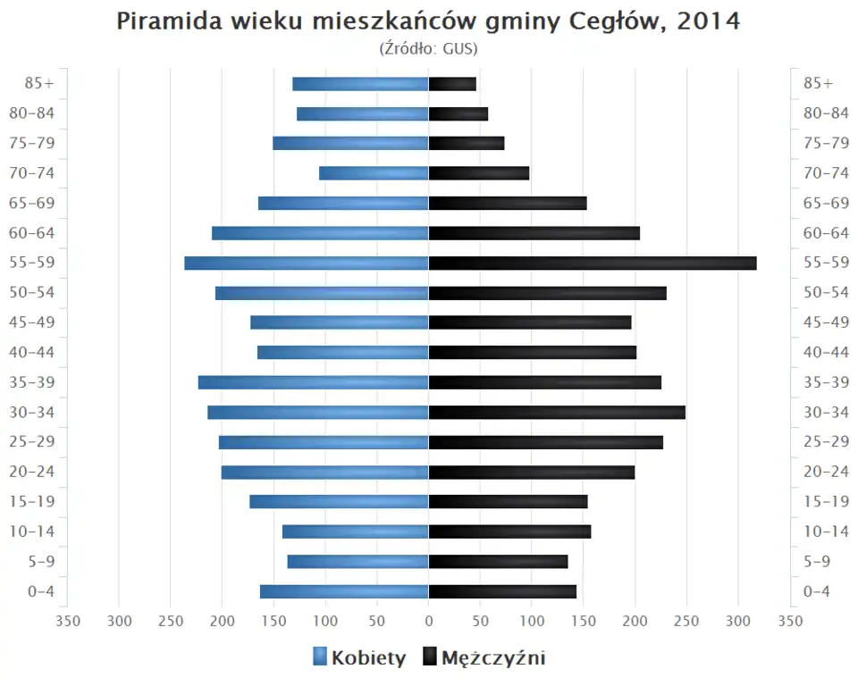 - Piramida wieku mieszkańców gminy Cegłów w 2014 roku[12].