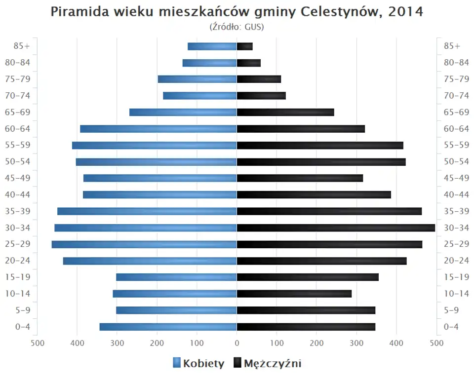 - Piramida wieku mieszkańców gminy Celestynów w 2014 roku[5].