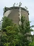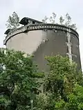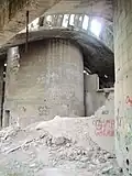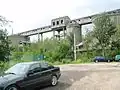 - 5 silosów, połączonych pomostem transportera cementu, wraz z „wieżą konwojera” – konstrukcją elewatorów cementu, przylegającą od strony zachodniej do silosa nr II (licząc od zachodu)[2].