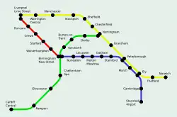 ![]() Pociąg British Rail Class 170 w barwach Central Trains na stacji kolejowej Cambridge | |