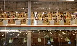 - na I i II piętrze otwarte jednoprzestrzenne księgozbiory, stanowiące zarazem wypożyczalnie przeznaczone dla czytelników pod nadzorem bibliotekarzy, czytelnie główne i specjalistyczne oraz pomieszczenia dla bibliotekarzy i pracowników zaplecza administracyjnego.