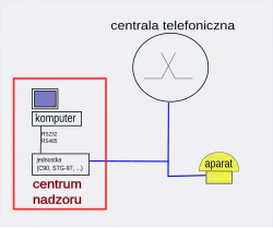 Komunikacja aparatu z centrum odbywa się za pomocą kodu (DTMF, modem, ISDN), aparat wysyła zakodowany raport.