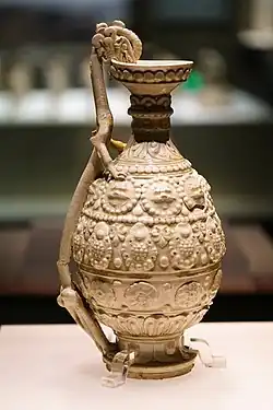 - Malowany dzban z dekoracją reliefową w formie feniksa i smoka. Wcześniejsza dynastia Han. Muzeum Pałacowe