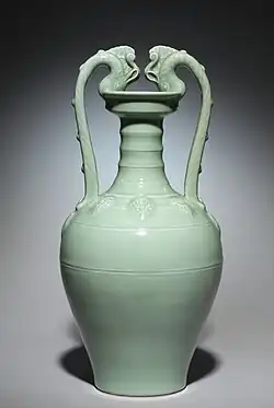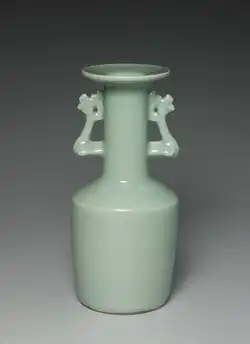 W epoce Ming (1368–1644) doszło do koncentracji produkcji w cesarskich piecach w Jingdezhen, skąd pochodzi prawie cała ważniejsza późniejsza porcelana. Jednocześnie produkcja różnego typu celadonów, przez tak długi czas stanowiąca centralny element chińskiej tradycji ceramicznej, w obliczu konkurencji z wyrobami z Jingdezhen w XV wieku szybko podupadła. Wśród późniejszych niskiej jakości celadonów można zauważyć próby naśladowania dekoracji niebiesko–białej porcelany. Wraz z nadejściem XVII wieku produkcja celadonów znajdowała się w głębokim upadku[64][3]. W tym okresie pojawiła się tendencja do pokrywania wzorem całej powierzchni i stopniowo zrezygnowano z wytwarzania naczyń typu songowskiego, które opierały się tylko na pięknie glazury. Na plan dalszy zeszły też wyroby z dekoracją reliefową[65].
