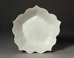 Spośród mnogości ówczesnej ceramiki ówcześni uczeni-literaci najbardziej cenili wyroby pochodzące z tzw. „Pięciu Wielkich Pieców”: Ding, Ru, Guan, Ge i Jun, które zaopatrywały również dwór cesarski[35]. Ceramika Ding wzięła swoją nazwę od powiatu Ding w Hebei, gdzie wytwarzano białą porcelanę o kremowej glazurze, która czasami w trakcie wypalania zbierała się w krople, na zewnętrznej warstwie naczynia nazywane „łzami”. Wytwarzana już w czasach dynastii Tang, była ona bezpośrednim spadkobiercą ówczesnej białej porcelany. Jej cechą szczególną było wypalanie naczyń wlewem do dołu, tak że miały nie pokryte szkliwem krawędzie wlewów, które następnie oprawiano w taśmę miedzianą lub srebrną (wypalanie wlewem do dołu pozwalało na umieszczenie znacznie większej liczby naczyń w pojemniku do wypalania). Ceramika Ding często była zdobiona podszkliwnie motywami kwiatowymi lub zwierzęcymi, takimi jak kaczki i ryby. Wczesne wyroby były często dekorowane za pomocą rycia w ceramicznej masie jeszcze przed jej wypaleniem, później w celu uzyskania bardziej złożonych form korzystano z gotowych odlewów[36][37][38] (zobacz ilustracja ceramicznej poduszki w kształcie leżącego niemowlęcia). Ceramika Ru wytwarzana na potrzeby dworu Północnej Dynastii Song (960–1127) to najrzadsza i najbardziej ceniona odmiana chińskiej porcelany. Produkowana w okolicy miasta Ru (obecnie w prefekturze Pingdingshan) nad rzeką o tej samej nazwie, prawdopodobnie tylko w latach 1086 do 1106, charakteryzuje się czerepem o kolorze kości słoniowej i matowym szkliwem o bardzo delikatnej skali barw, od bladolawendowej do błękitu, które czasami ma delikatne krakelury[39][3].