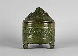 Ceramiczna urna pogrzebowa (hunping) w której dekoracji taoistyczna wizja raju łączy się z szeregiem Buddów pogrążonych w medytacji[24]. Ceramika Yue, Zachodnia Dynastia Jin (265–316). Metropolitan Museum of Art