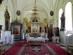 We wnętrzu świątyni znajduje się wyposażenie z XVII–XVIII w., w tym ikony z tego okresu[1]. Ikonostas w cerkwi jest jednorzędowy.