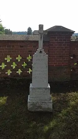 W sąsiedztwie świątyni znajduje się kilka krzyży wotywnych oraz XX-wiecznych nagrobków, w tym kilka symbolicznych, upamiętniających parafian zabitych w czasie II wojny światowej lub zmarłych w latach powojennych.