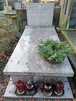 Pochowany został na cmentarzu Powązkowskim w Warszawie (kwatera T-3-6)[3].