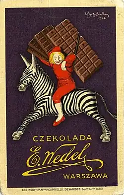 Cappiello uznał, że doskonałym symbolem dla wedlowskiej czekolady będzie chłopiec dosiadający egzotycznej zebry i dzierżący tabliczki czekolady na plecach[5].