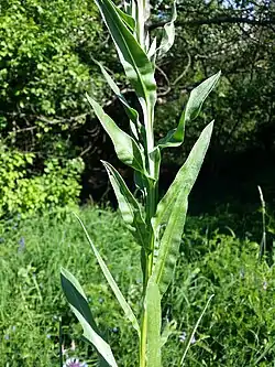 - Wzniesiona o wysokości od 80 cm, cała białowełnista lub pajęczynowata. Występująca w Polsce odmiana pienińska osiągają wysokość do 40 cm. Posiada krótkie i pełzające kłącze bez rozłogów, z którego wyrasta po kilka łodyg[5].
