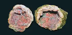 Występuje w skałach wulkanicznych – melafirach, bazaltach, ryolitach, andezytach, dacytach. Stanowi produkt wietrzenia serpentynitów, niekiedy powstaje w wyniku przekrystalizowania opalu.