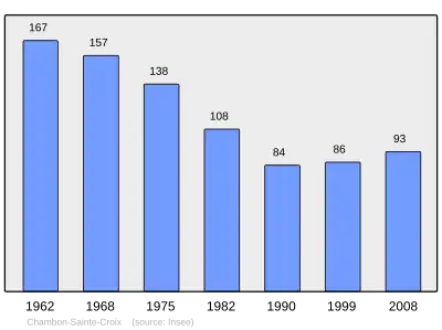 Według danych na rok 1990 gminę zamieszkiwały 84 osoby, a gęstość zaludnienia wynosiła 13 osób/km² (wśród 747 gmin Limousin Chambon-Sainte-Croix plasuje się na 519. miejscu pod względem liczby ludności, natomiast pod względem powierzchni na miejscu 626.).
