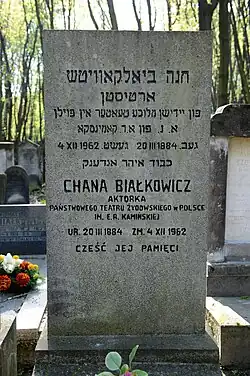 Pochowana jest na cmentarzu żydowskim przy ulicy Okopowej w Warszawie (kwatera 39, rząd 2). Jej mąż Izrael (1890–1959) i syn Michał (1919–1990), również byli aktorami.