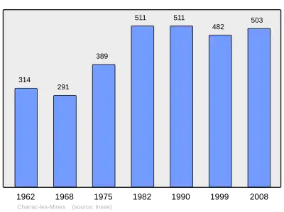 Według danych na rok 1990 gminę zamieszkiwało 511 osób, a gęstość zaludnienia wynosiła 39 osób/km² (wśród 747 gmin Limousin Chanac-les-Mines plasuje się na 254. miejscu pod względem liczby ludności, natomiast pod względem powierzchni na miejscu 492.).