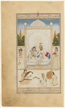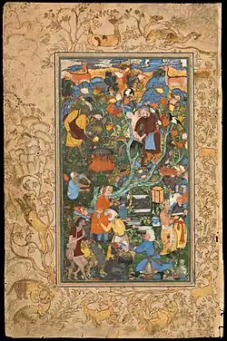 - ↑ Bahram Gur and the Iranian princess in the white pavilion, from Seven Portraits (Haft Paykar), in the Five Poems (Khamsa), by Nizami. [dostęp 2021-04-08]. (ang.).