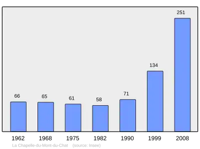 Według danych na rok 1990 gminę zamieszkiwało 71 osób, a gęstość zaludnienia wynosiła 10 osób/km² (wśród 2880 gmin regionu Rodan-Alpy Chapelle-du-Mont-du-Chat plasuje się na 1548. miejscu pod względem liczby ludności, natomiast pod względem powierzchni na miejscu 1351.).