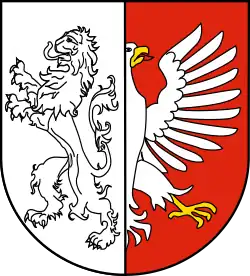 W polu lewym, czerwonym, połuorzeł srebrny.