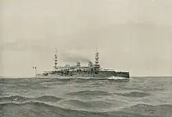 - ↑ Gozdawa-Gołębiowski 1994 ↓, s. 532 podaje wyporność 11 881 ton; Leyland 1900 ↓, s. 233, Crowford 2000 ↓, s. 66 i Roberts 2021 ↓, s. 193 11 880 ton, zaś Labayle-Couhat 1974 ↓, s. 18 – 11 900 ton.