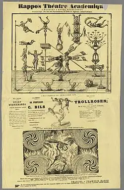 Rappo występował w stroju hinduskim, a jego pokazy były połączeniem gimnastyki, żonglerki i ewolucji na linie. Rappo popisywał się swoją niezwykłą siłą. Potrafił żonglować nożami i piłkami, trzymając na nosie drewniany wspornik z jajkiem na szczycie, a także kilkukilogramowymi kulami armatnimi. W jego programie znalazła się także woltyżerka oraz numer popisowy, jakim był "spacer w powietrzu" - akrobata utrzymywał równowagę stojąc na jednym z ramion kręcącego się 9-metrowego wiatraka. Po sukcesach w Berlinie wyjechał do Rosji, gdzie występował przed obliczem cara Mikołaja I w Petersburgu. W czasie pobytu w Rosji nabawił się tyfusu, który stał się przyczyną jego śmierci.