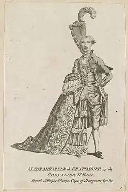 ![]() Charles d’Éon na portrecie pędzla Thomasa Stewarta z 1792 roku według Jean-Laurent Mosniera | |