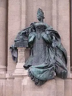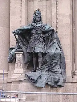 Na każdej z kolumnad znajduje się mający około 5 m wysokości posąg wykonany z brązu przez Heinricha Bauckego i umieszczony od strony Tiergarten[5][2]. Posąg z południowej kolumnady przedstawia będącego założycielem miasta Charlottenburg pruskiego króla Fryderyka I, który ukazany jest z berłem i w płaszczu z gronostajów, z kolei posąg z północnej kolumnady przedstawia jego żonę, Zofię Charlottę z makietą pałacu Charlottenburg[3][2].