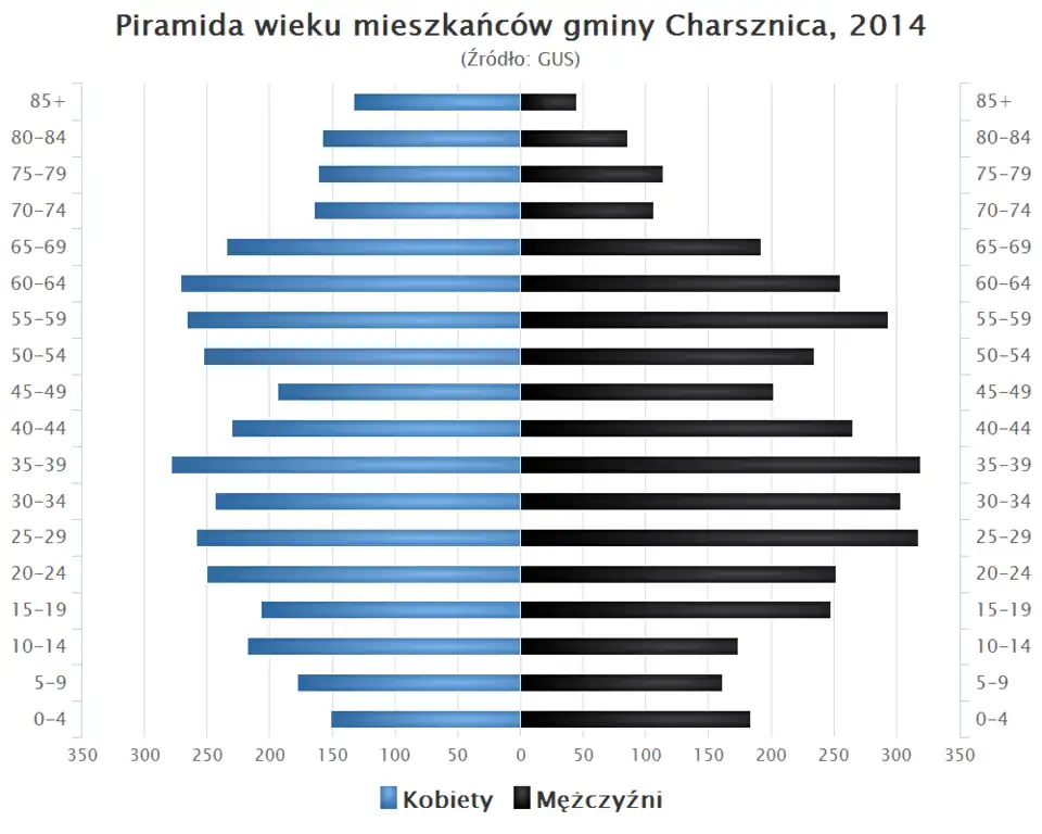 - Piramida wieku mieszkańców gminy Charsznica w 2014 roku[1].