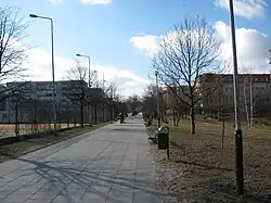 Począwszy od 1934 zaczęto stawiać tu bloki oraz domki dwurodzinne. Od 1940 w ramach programu budownictwa mieszkaniowego dla dużych zakładów przemysłowych, przy ul. Odrzańskiej, Worcella, Łużyckiej, Buczka, Lotników Polskich, Grabowskiego i Bitwy pod Lenino, powstały budynki dla pracowników stoczni Schichaua, jednej z najważniejszych stoczni budujących okręty w Niemczech[10].