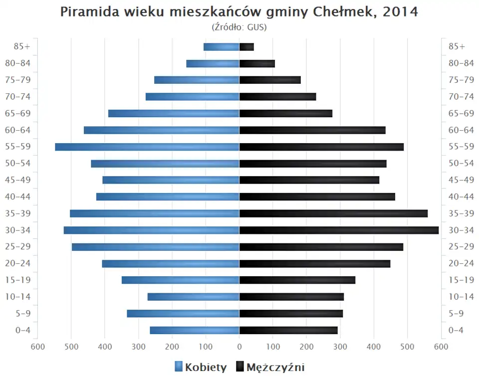 - Piramida wieku mieszkańców gminy Chełmek w 2014 roku[1].