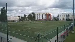 - Pełnowymiarowe boisko ze sztuczną nawierzchnią, spełniające wymogi FIFA.