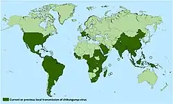 W 2006 wystąpiły masowe zachorowania na wyspach Oceanu Indyjskiego (Reunion, Majotta, Seszele, Mauritius, Komory, Madagaskar, Malediwy) oraz w zachodnich, nadbrzeżnych rejonach Indii i w Malezji[3].