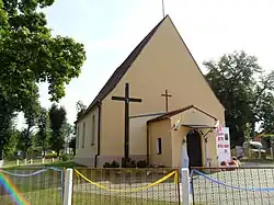 - kościół parafialny pod wezwaniem świętego Józefa, gotycki z XIII wieku, przebudowany w XIV, XV i XVI wieku[17][18]. W XV oraz XVIII–XIX stuleciu dokonana została jego przebudowa, a po 1945 roku dostawiono od strony zachodniej przedsionek. W 1900 roku rozebrano wieżę, która groziła zawaleniem[19]. Jest salową budowlą założoną na rzucie prostokąta. Po południowej stronie dobudowano kruchtę. Posiada wspólny dach nad nawą i prezbiterium. Wyposażenie świątyni stanowi wykonany współcześnie elektryczny ołtarz oraz ławki[20].