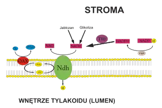 - ↑ Sazanov LA., Burrows PA., Nixon PJ. The plastid ndh genes code for an NADH-specific dehydrogenase: isolation of a complex I analogue from pea thylakoid membranes.. „Proc Natl Acad Sci U S A”. 3;95. 3, s. 1319-24, 1998. PMID: 9448329.