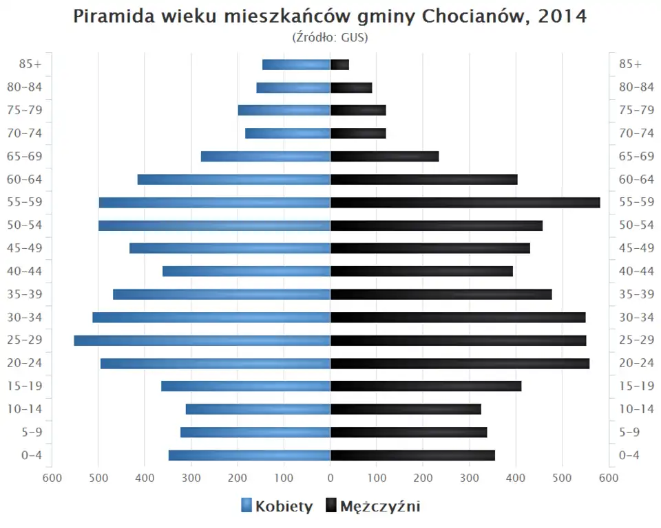 - Piramida wieku mieszkańców gminy Chocianów w 2014 roku[1].