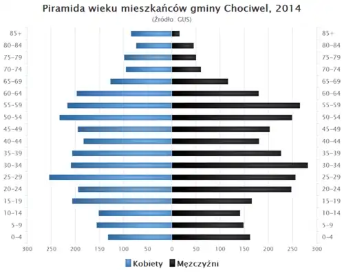 - Piramida wieku mieszkańców gminy Chociwel w 2014 roku[1].