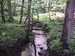 Strumień bierze początek w stawie Oczko Marzanny, płynie ku północy na dnie wąwozu przecinającego bogato urzeźbioną morenę czołową w obrębie rezerwatu przyrody Bukowe Zdroje. Po obu brzegach płaty zespołu łęgu jesionowego zdominowanego przez jesion wyniosły z udziałem olszy czarnej, sporadyczną domieszką wiązu szypułkowego i buka. Gęsty podszyt tworzą krzewy trzmieliny zwyczajnej, głogu jednoszyjkowego, derenia świdwy jak i nalot jesionu, wiązu, olszy, dębu, jaworu i grabu. W warstwie ziół najliczniejsze są zachodnie gatunki roślin: turzyca zgrzebłowata, stokłosa gałęzista i przytulia leśna. W zaroślach nadbrzeżnych gnieździ się wiele ptaków, w tym rzadko spotykane.